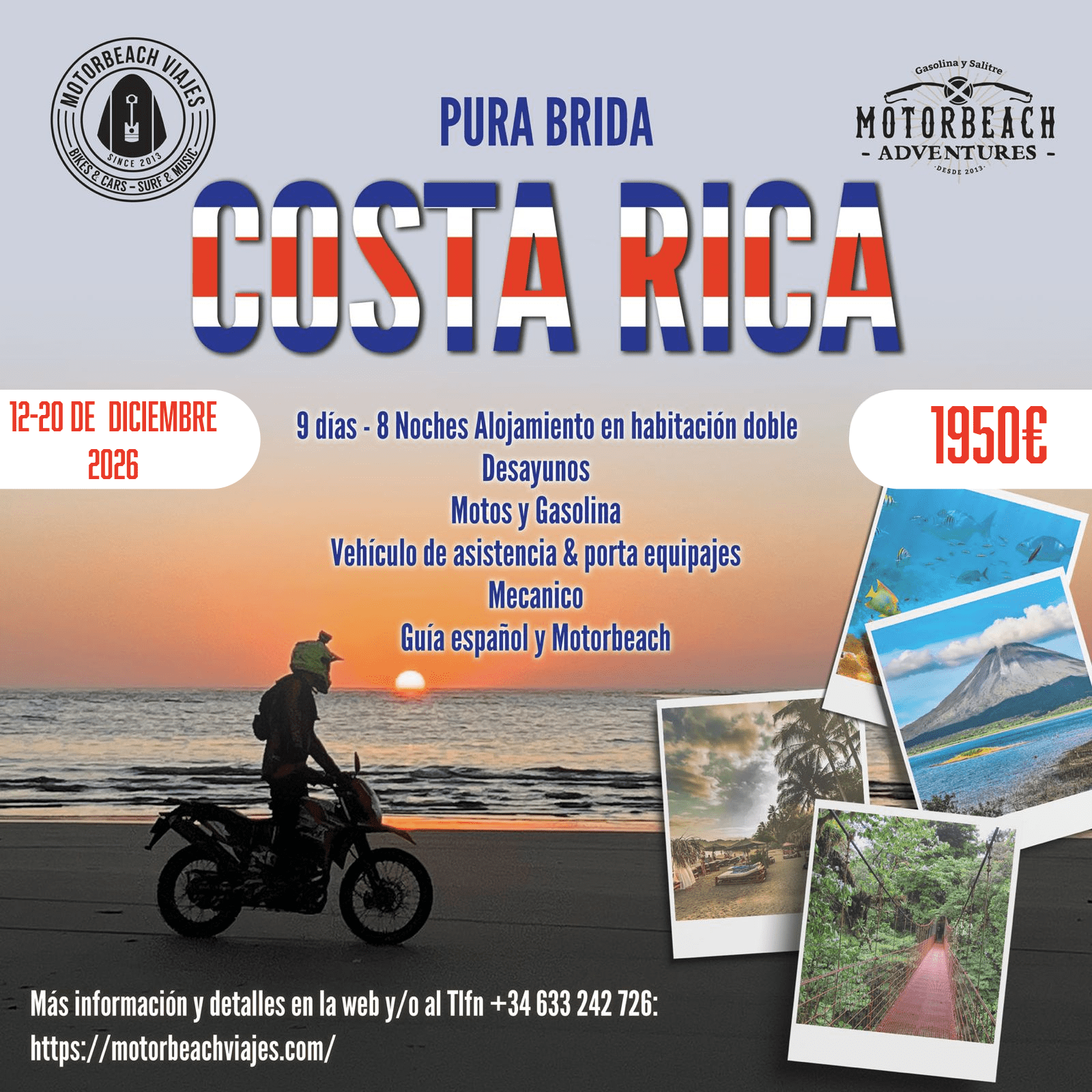 "Me dejaste la cabeza llena de volcanes en erupción, kilómetros y kilómetros de playa en moto y cervezas entre colegas con la misma locura que yo. No sé cuánto costó el viaje pero si se lo que vale. Gracias MotorBeach por hacerme sentir más libre!!!!!"