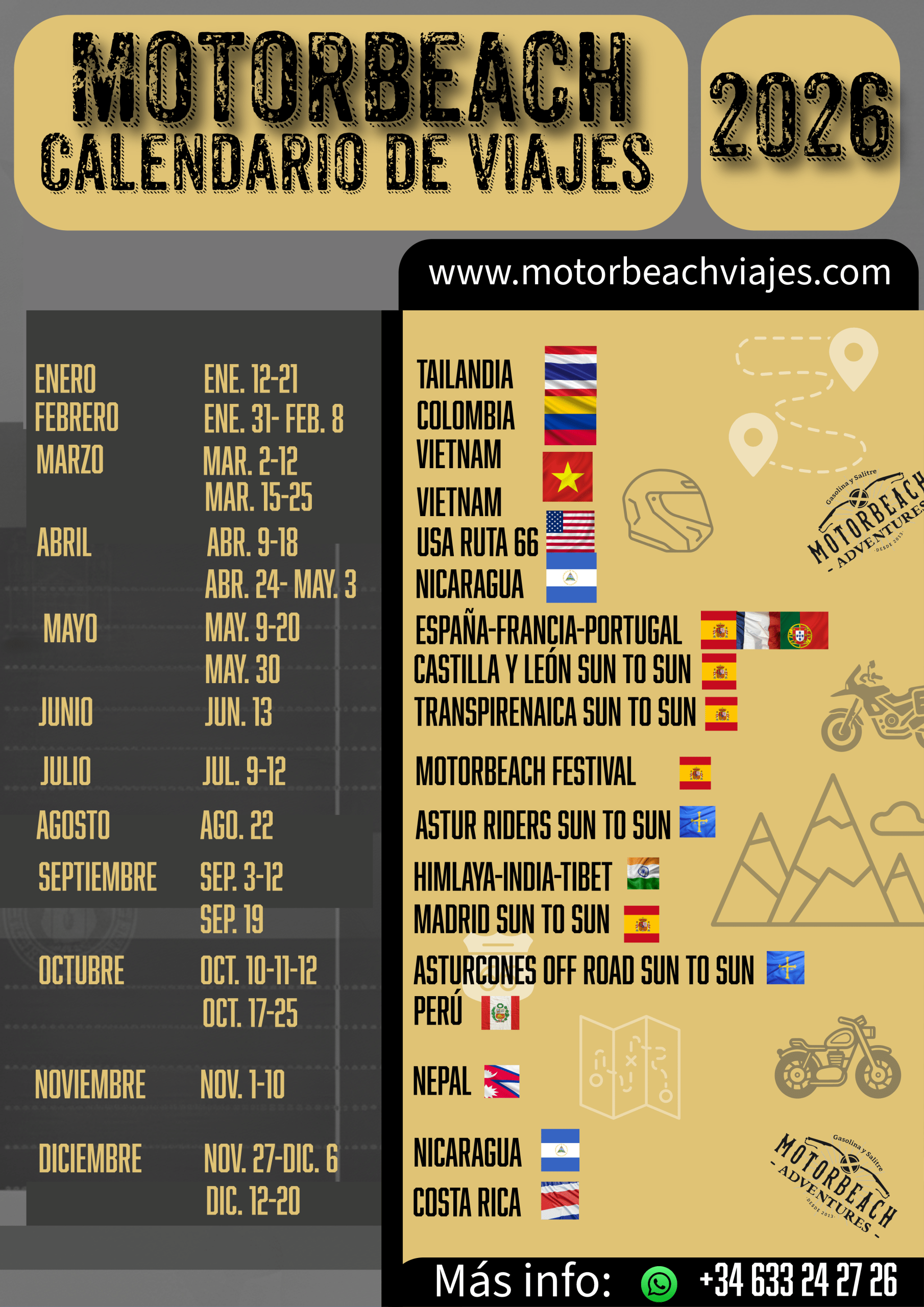 Consulta el calendario y reserva en www.motorbeachviajes.com.