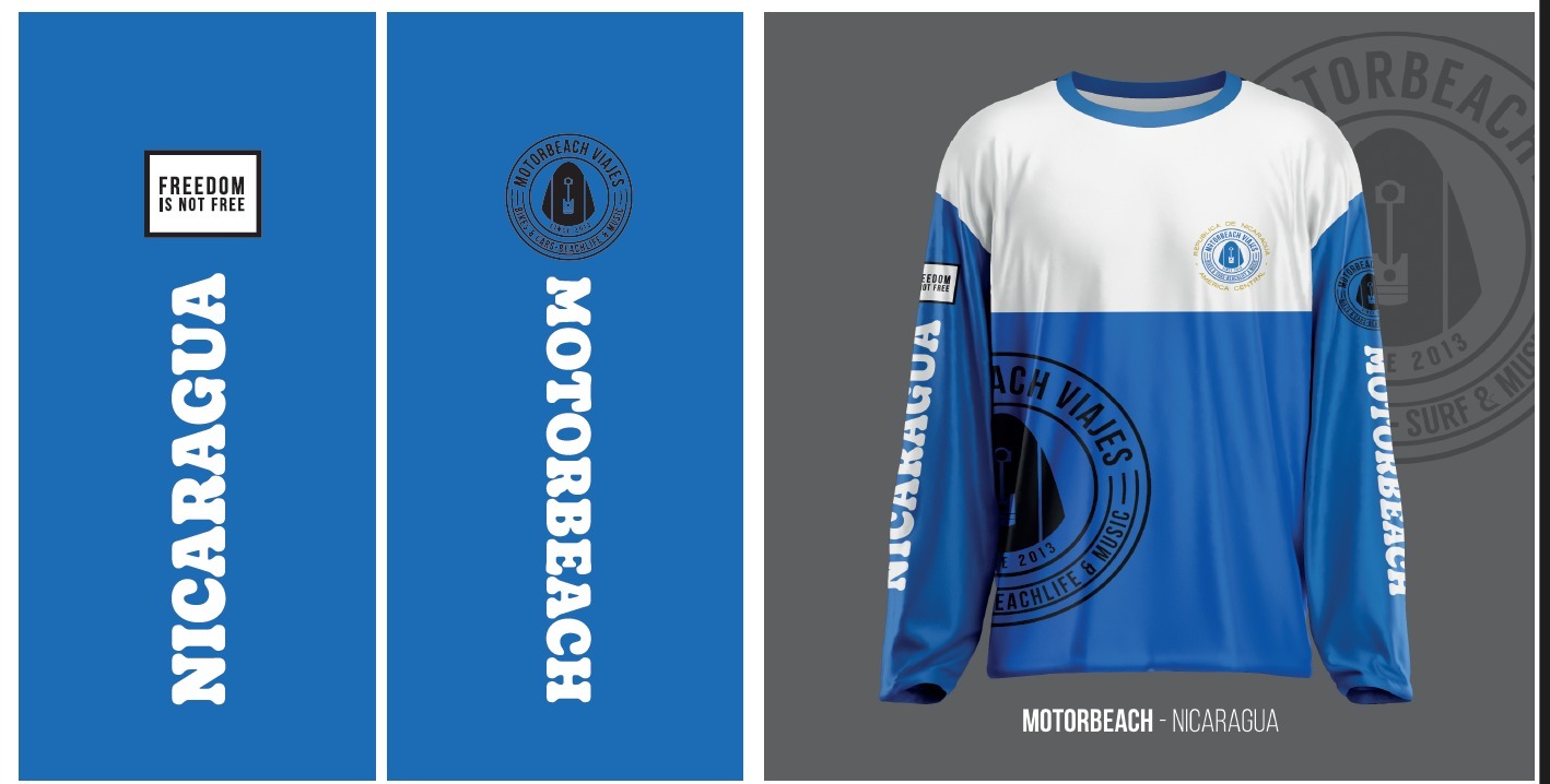 - Detalles en las mangas con las inscripciones Nicaragua y Motorbeach
